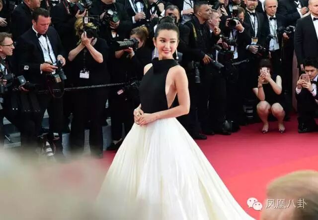 到了我们第二位中国红毯代表李冰冰的出场时间。只见她身穿黑白长裙,竖着高高的发髻,显得十分优雅~