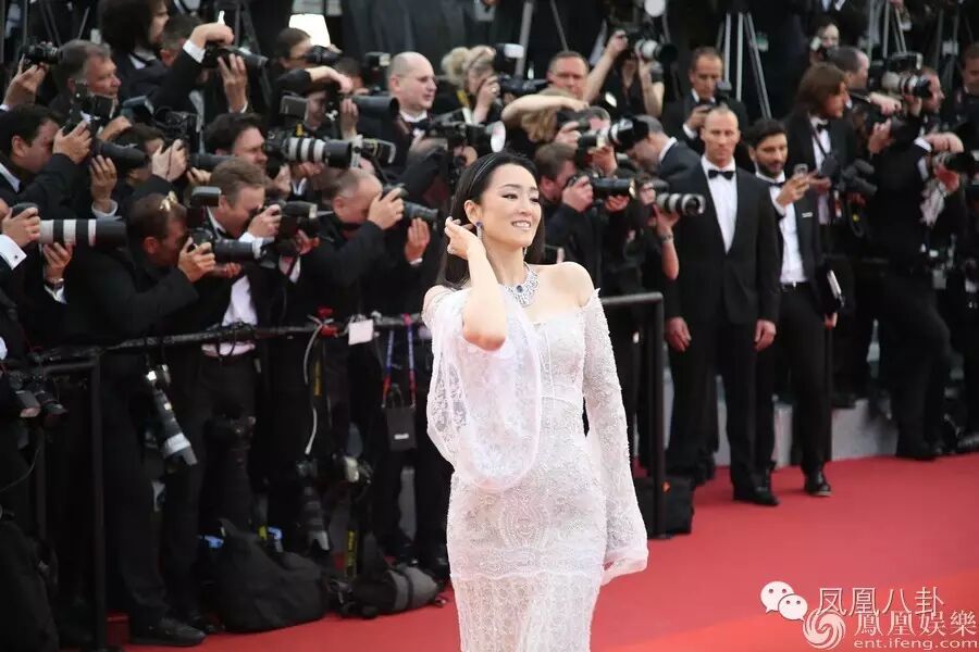 梨涡浅笑的样子简直迷死人了!因此自然也就成了今年戛纳电影节官方转播镜头给的最多的中国女演员啦。从踏上红毯的那一刻算起,巩俐前后一共被官方镜头拍了近80秒的时间!