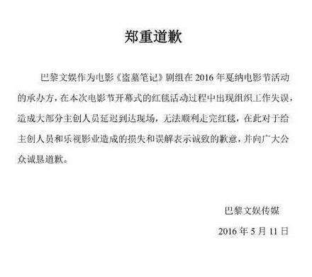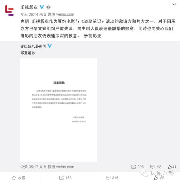 随后没多久,承办方和乐视影业就分别贴出了道歉书……