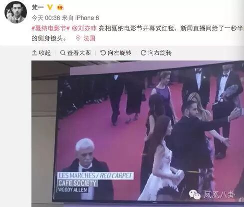 要知道在去年的戛纳转播画面里,中国女星一个镜头都没有。不过因为近年来在国际上打拼的风生水起,李冰冰也渐渐被外媒所熟知,所以这次在官方转播画面中,她也出现了两次。