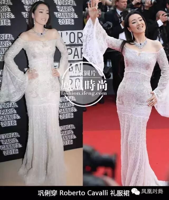 根据线报,这次巩俐穿的是Roberto Cavalli白纱蕾丝礼服,佩戴的是伯爵Piaget Sunny Side of Life高级珠宝与Extremely Piaget高级珠宝~
