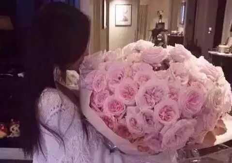 在网上晒了自己收到的玫瑰花