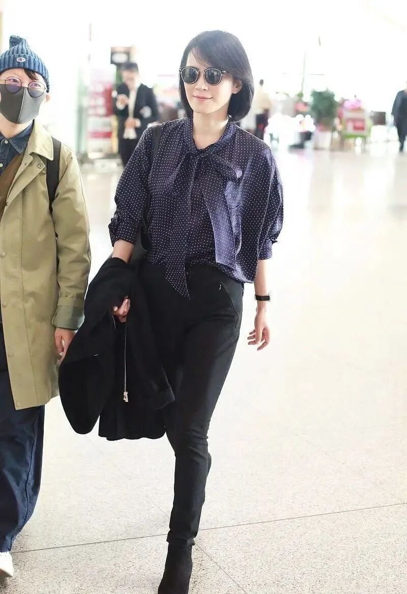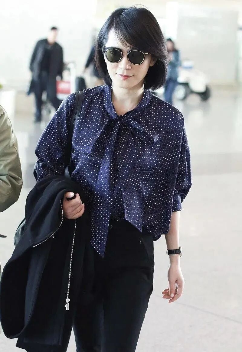 懂得穿衣打扮的姐妹们,懂得 "化繁为简 "的搭配技巧,合理穿衣,总是选择得体的亮点来突出自己的气质优势和魅力,但又不能太夸张,以免过犹不及。就像俞飞鸿的小点缀丝质衬衫,虽然没有选择醒目的色调,但藏青色上的白色碰撞,恰到好处,清新脱俗。因此,裤子、夹克,甚至鞋子都只能与黑色搭配。