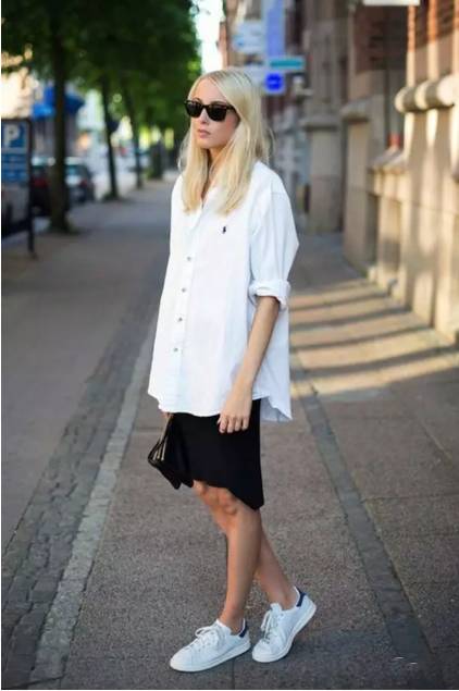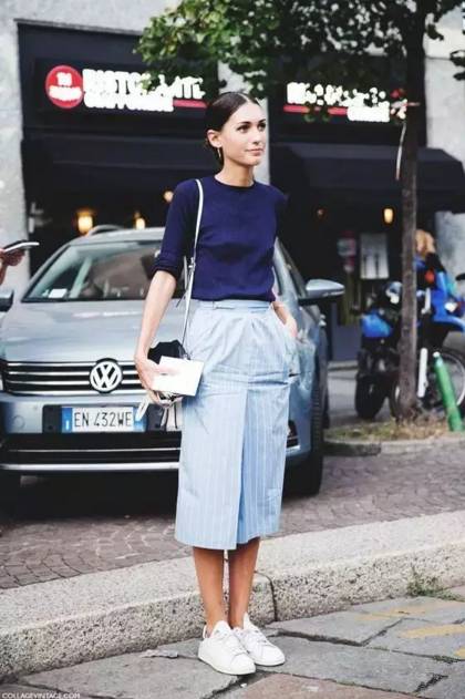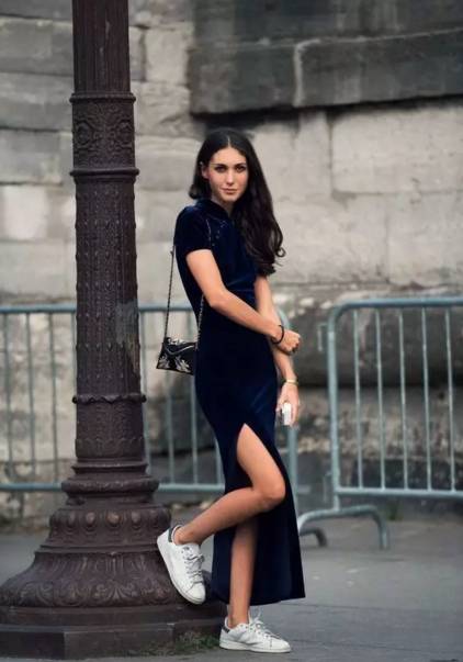 看到了没有,无论你是短裙、及膝裙、过膝裙,还是百褶裙、紧身裙、伞裙甚至旗袍!都可以搭一双运动鞋!