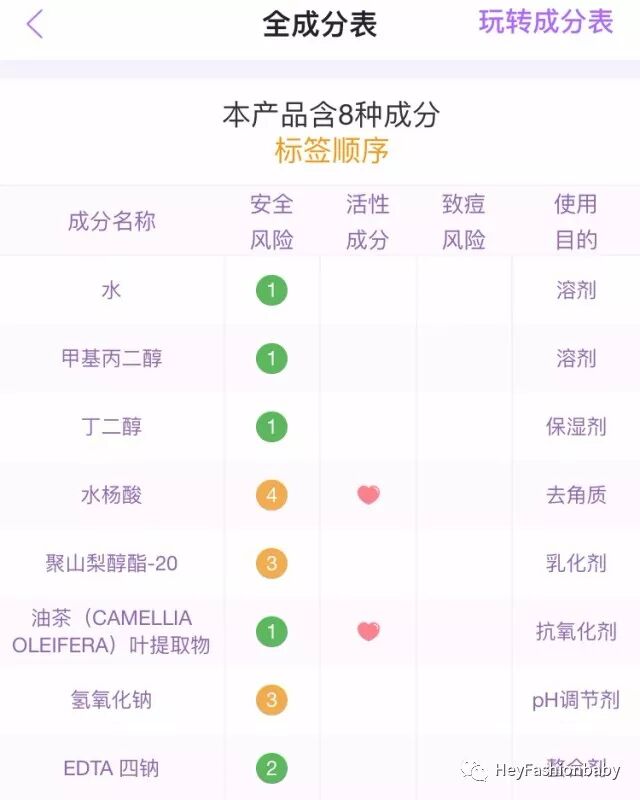 成分表非常漂亮,很简单不会给皮肤过重的负担,成分致痘风险为零。