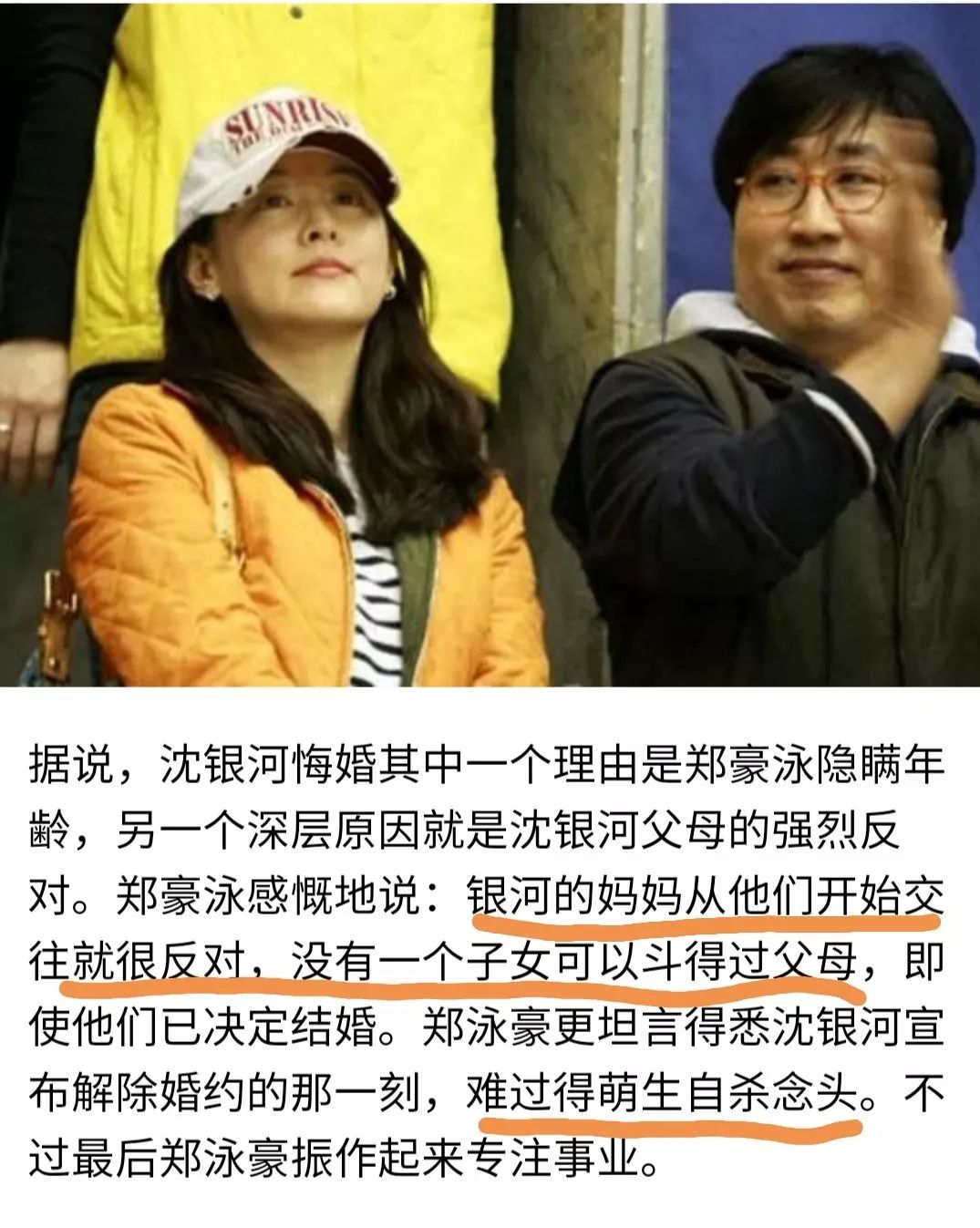 当年与郑豪泳恋爱时遭到家人的反对,沈银河靠种种手段才说服了父母接纳郑豪泳。还愿意婚后退出娱乐圈随丈夫定居美国。