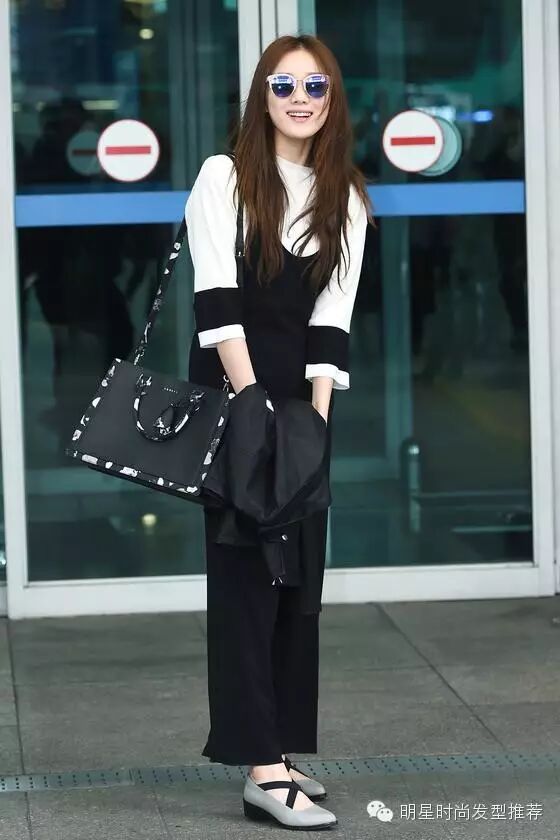 初春时,一件黑白针织衫配上背带阔腿裤,多么的舒服