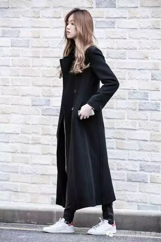 个子高就是好,可以穿这种加长版的大衣,踏一双小白鞋即可