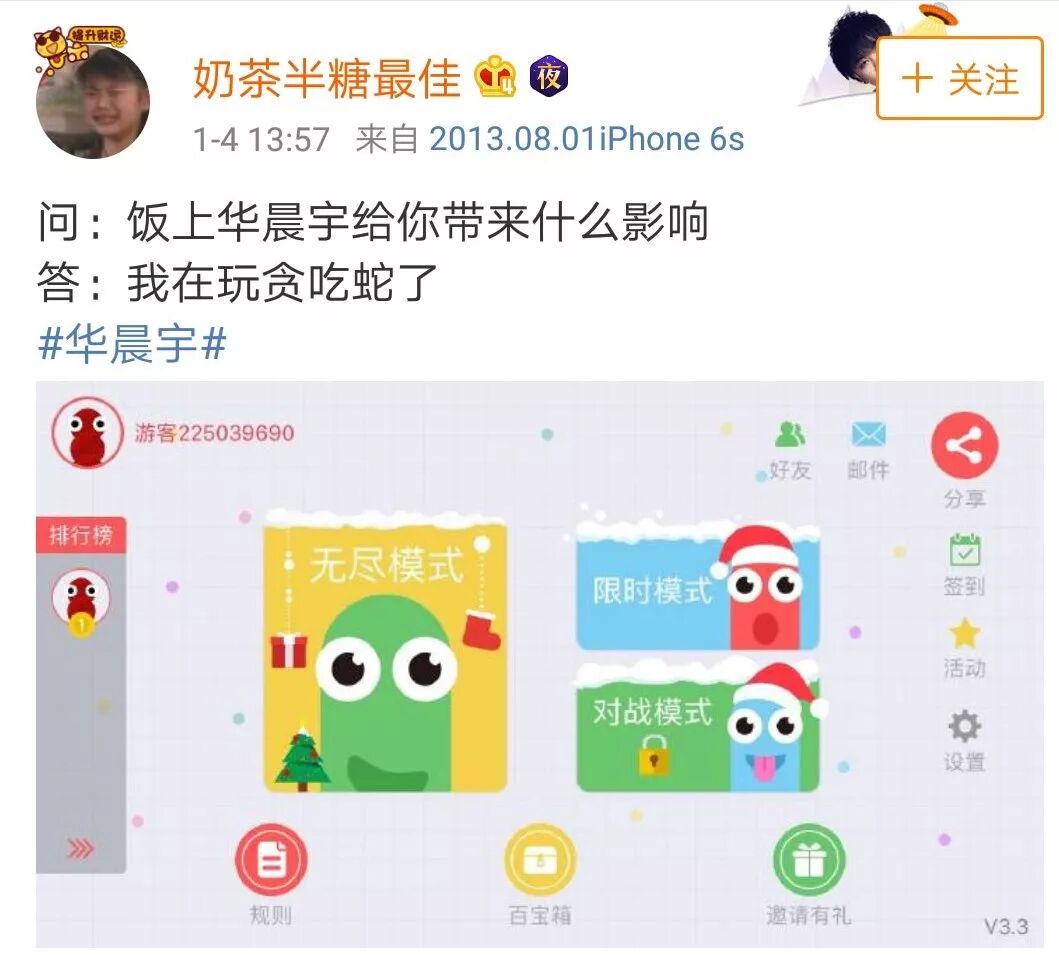 “华晨宇又安利贪吃蛇了!真爱粉啊!”