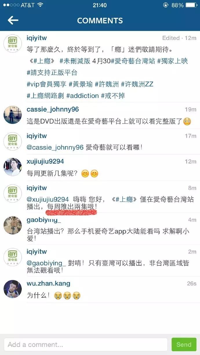 另外还有一个好消息哦,爱奇艺台湾站4月30日开始要推出《上瘾》完整版喽,有条件的小伙伴们火速去围观一下吧。