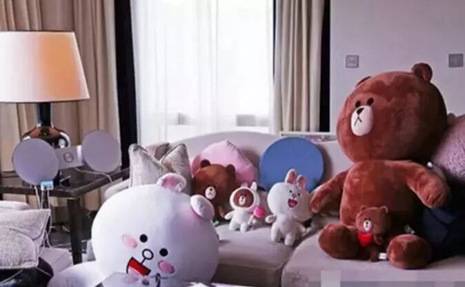 此前,王思聪曾接受媒体采访,他的豪宅内饰也随之曝光。突然有种进错房间的赶脚,大大小小的Line公仔摆满了卧室,看来思聪老公心里也住了一个小公举啊。