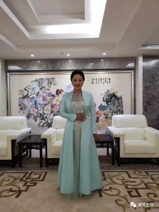 王姬留着一头流畅的长发,穿着一身蓝色的礼服,上身做出镂空的设计,下身做出百褶的效果,很不错的穿搭方式,很适合在重要场合出席的穿搭,让王姬在穿搭后,有一种优雅的感觉,让她看起来显得比较气质。