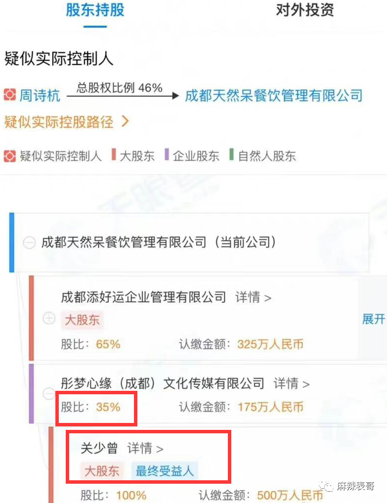 为什么要喊她关老板?因为关晓彤的爸爸关少曾在这个公司持股35%。