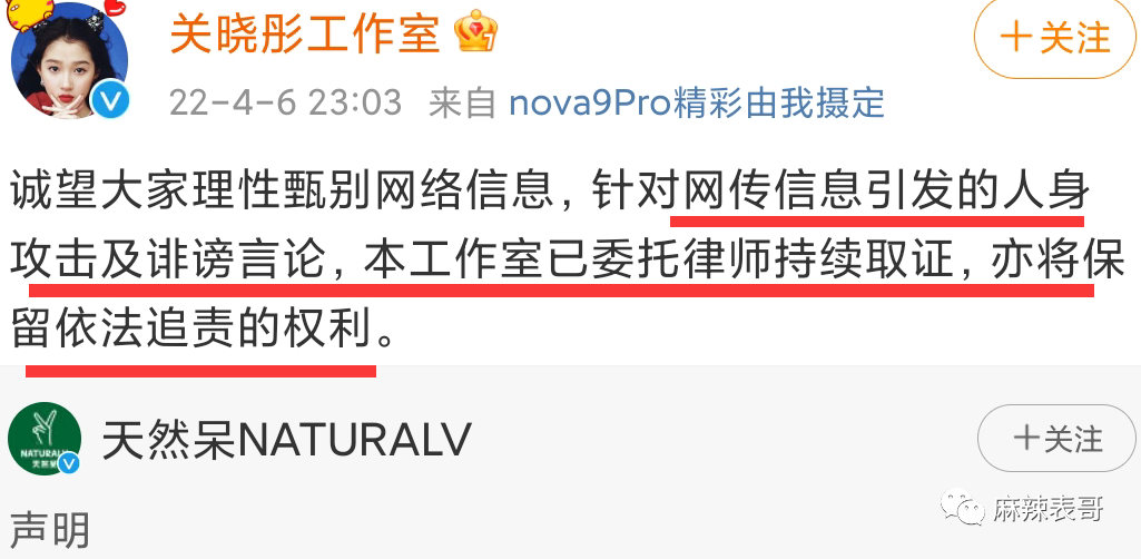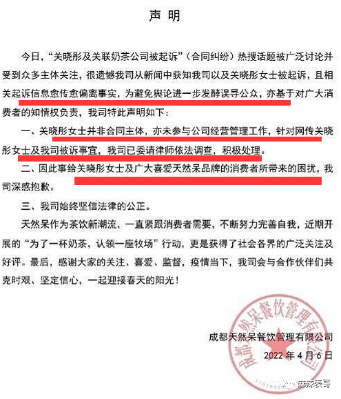 声明里指出关晓彤不是合同主体,也没有参与公司经营管理工作,因为这事给关晓彤带来了困扰,深感抱歉。