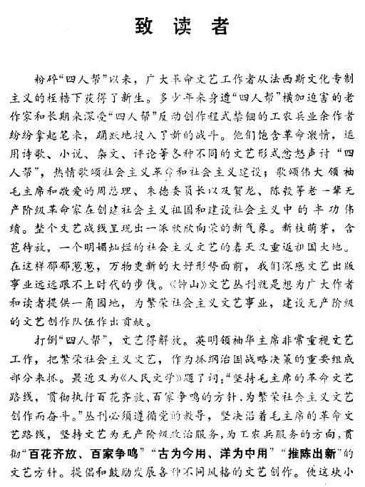 原文刊于《鍾山》文艺丛刊1978年第1期。