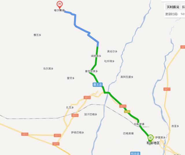 从和田市到达里亚博依乡约380公里,该乡地处沙漠腹地,在地图上没法找到这个乡的地址,进入需向导。