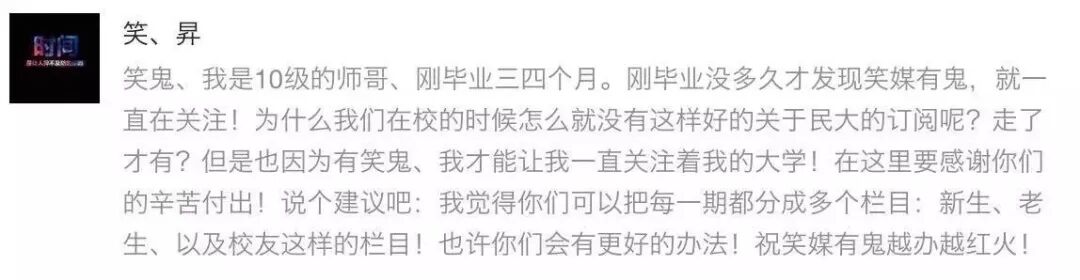 我们是由民大2011级老学姐学长创建的校园自媒体,目前成员有的在读研,有的就职于互联网、金融、媒体等各行各业,基于对母校和对本平台的热爱,我们诚邀有想法、有创意、有热情的你一起来做点有意思的事。