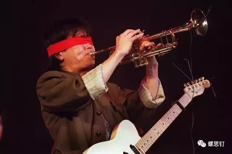 (蒙上红布,梗着脖子,崔健的经典形象之一)
