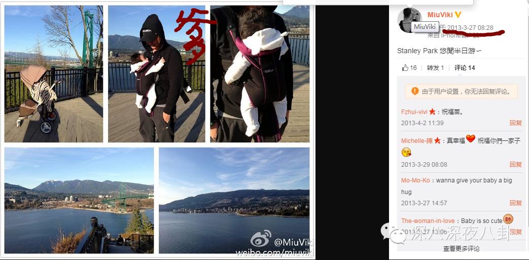 孩子他爸的照片在苗苗姑娘微博里没几张,刚生完的时候有一组是去斯坦利公园溜达的而后此人杳无音讯