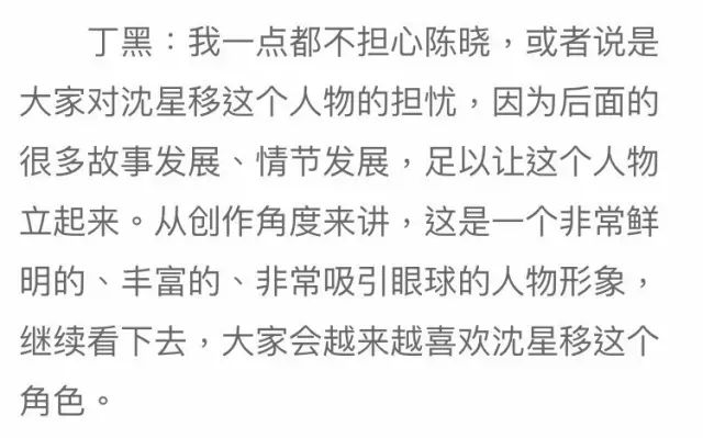 面对完美的吴聘是否会影响沈星移,导演丁黑也说自己一点也不担心。