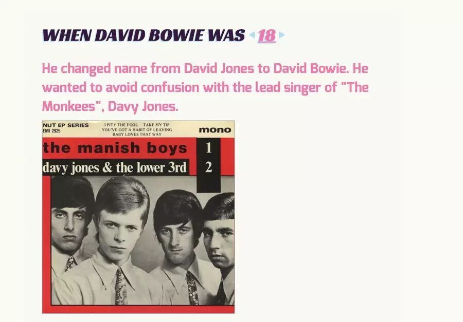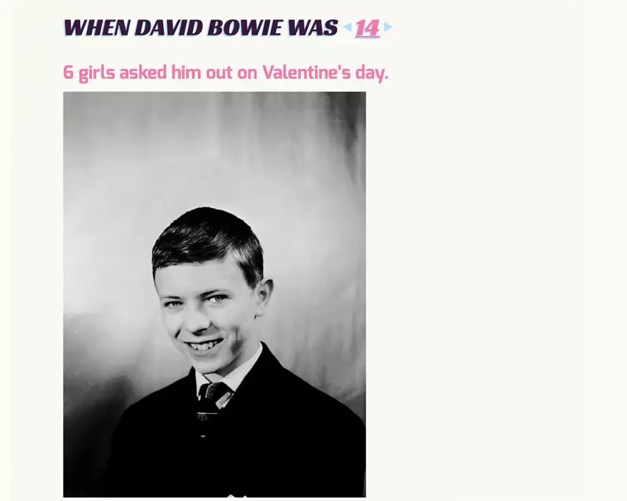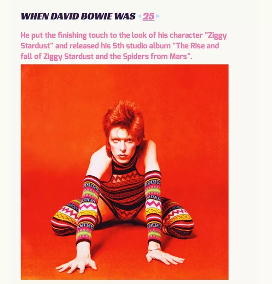 今天看到一个网站,叫"What did David Bowie do at your age?"
