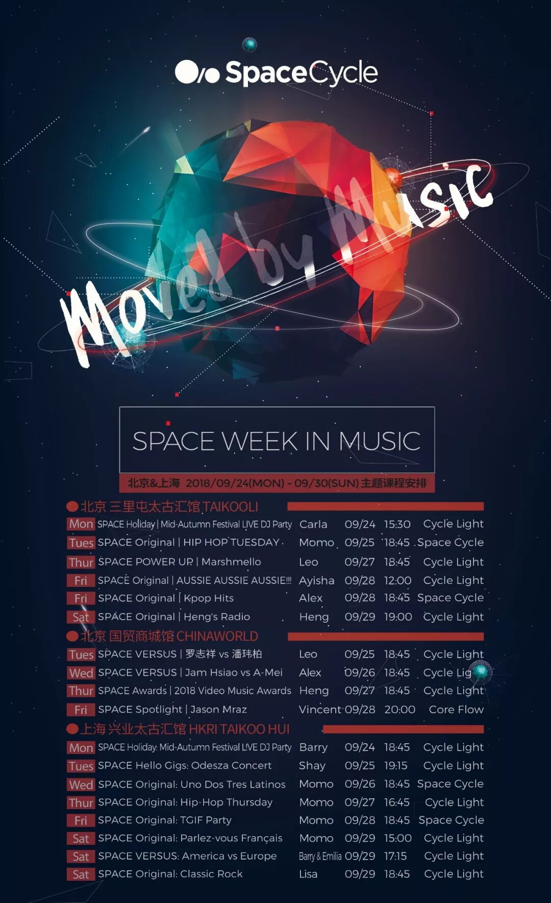 中秋假期,SC的Instructors哪也不去,就在熟悉的场馆等你。准备了新歌单和L!VE DJ的中秋派对即刻开启,在这个团圆的时刻,来SPACE大家庭,和教练们一起看月亮如何?