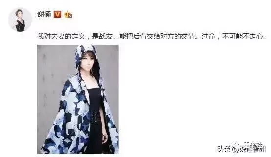 谢楠回复说:可能只有我知道,你为了等我收工然后说一句晚安,挨的多辛苦。我们是没办法比较那些老夫老妻或者患难情侣,但我知道你曾经遭遇的、看见你正在忍耐的、分享你一直珍重的,所以,我会一直陪着你。