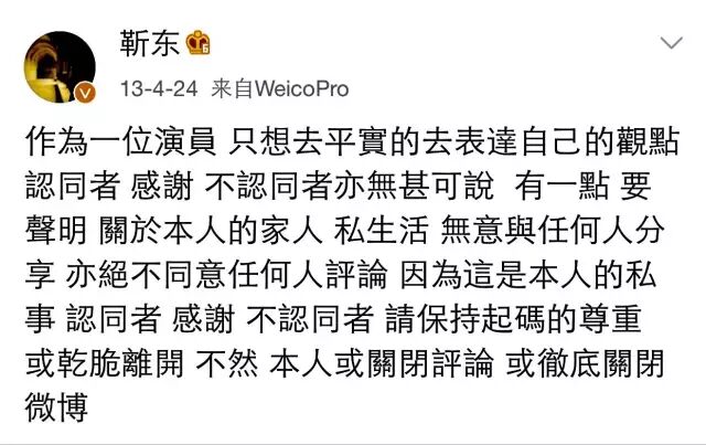 当这段往事随着靳东成名而被挖出来时,靳东显然很生气,甚至在微博上发飙: