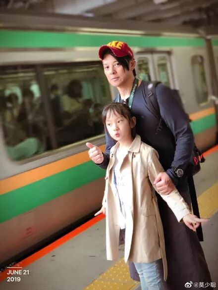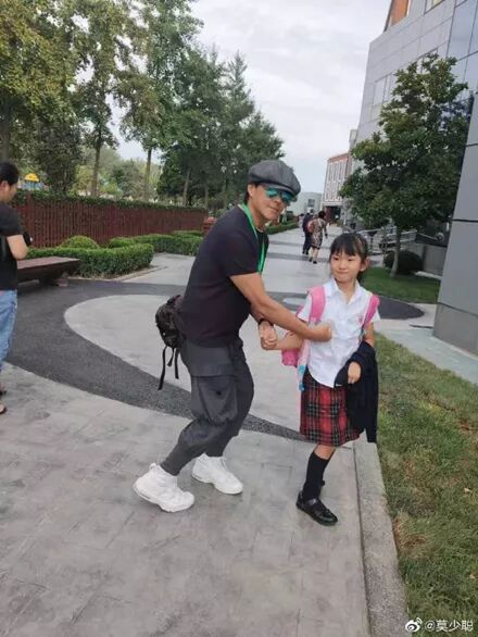 莫少聪这次很大方的晒出多张和女儿的合照,其中一张莫少聪身穿一件深色T恤,下搭一条工装长裤,戴一顶贝雷帽还戴着超大墨镜,整个人很休闲。而莫少聪的女儿穿的应该是校服,背着一个粉色书包,不知道是不是因为要开学了,看上去不是很开心的样子。