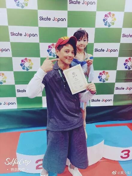 而这张照片应该是莫少聪的女儿参加比赛获奖拍摄的照片。照片中莫少聪的女儿身穿比赛服装,站在领奖台上,而莫少聪手拿证书,看上去很开心。