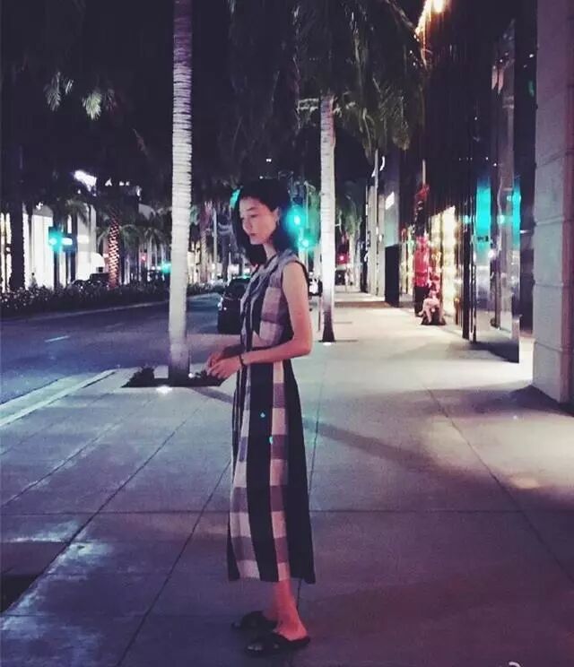 格子连衣裙,简单的设计又不失时尚,高腰的设计将车晓显得十分的高挑又有气质。