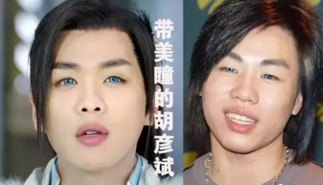 发福的脸加上蓝色美瞳,他被网友吐槽为带着蓝瞳的胡彦斌,定睛细看,还真有几分神似。