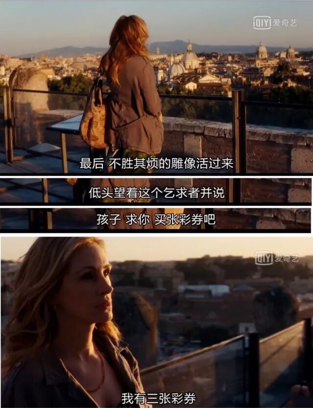 伊丽莎白的旅途宛如三节人生课堂:在意大利学会享受生活;在印度学会放下过去;在巴厘岛学会找寻自我内心的平衡。