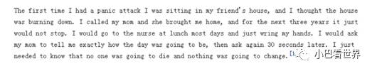 等到上学了,又得了焦虑症。她第一次焦虑症病发的时候,正坐在朋友家里,但却感觉到朋友家正在被烧毁。本应美好的童年,小艾玛却在恐慌焦虑中度过。