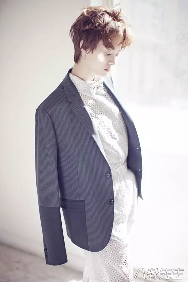 但脸毕竟女性化,所以只能说算是成功地演绎了中性风。好看,但没有帅的感觉▼