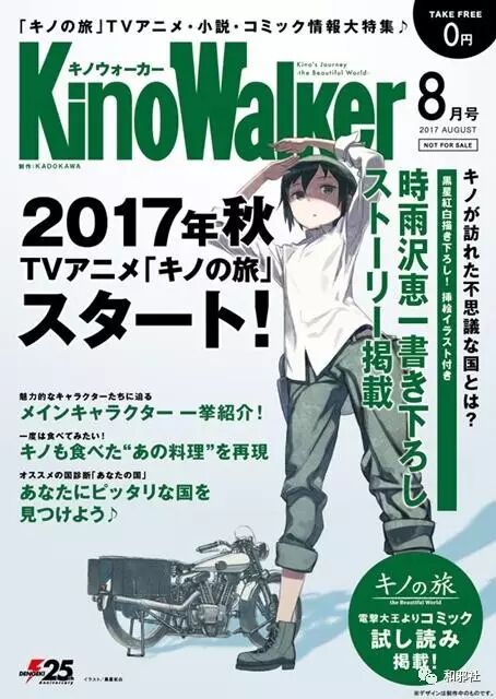 由时雨泽惠一著作、黑星红白插画的轻小说『奇诺之旅』,其新版TV动画『奇诺之旅 the Beautiful World』已经确定将在今年10月播,动画将由隶属于云雀工作室的Lerche负责制作。随着播出时间临近,官方也将在今年的C92上举办多项活动为动画造势。活动包括:将在C92的现场免费派发「Kino Walker」的介绍书,书中将介绍作品的各类信息,同时官方还将在8月4日和8月10日,连续公布动画的相关情报,敬请期待。