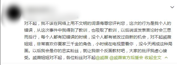到底逼着黑粉上午11点发了长文道歉。