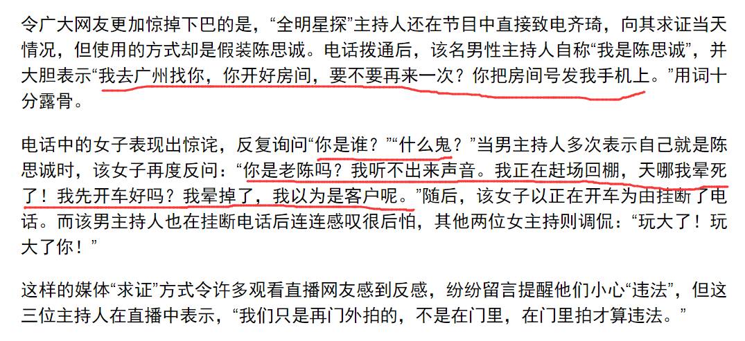 随后,全明星探的直播主持人以陈思诚的名义给第一位白衣女子打了电话,说了些“我去广州找你,你开好房间,要不要再来一次?你把房间号发我手机上”“那天晚上不爽啊”等露骨的词语(low爆了~)