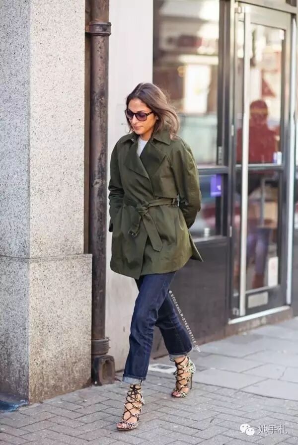 想穿出职场女强人的那种干练吗?长款的军绿色外套来帮你!可能你会说,长款的军绿色外套,不是优雅淑女气质吗?这里告诉你,如果你把腰带绑起来,就会抑制了长款军绿色风衣的飘逸感,多了一份内敛。如果你把风衣敞开,那就是来去如风的干练了。