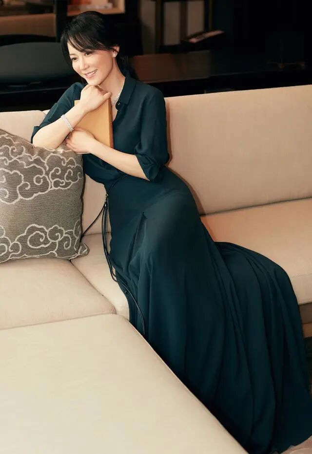 俞飞鸿也是气质女神中的的领先者,这一身墨绿色长款衬衫裙优雅又知性,整体气质柔和,又不失一种干练,一切都拿捏的刚刚好。气质好的人就是不管在简单的衣服都能穿出属于自己的美,真是让人羡慕了。