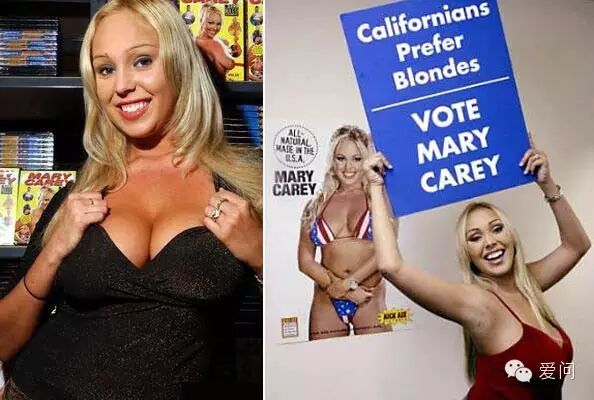 美国艳星玛丽·凯里的名声大振并非源于职业本身,而是牵扯上一系列政治因素。作为共和党党员,凯里2003年参加美国加利福尼亚州州长竞选,虽未成功,却赢得知名度。凯里于2006年再次参加加州州长竞选活动,她准备再战明星州长阿诺德-施瓦辛格。