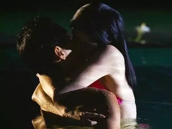徐徐来到泳池中央,双臂自然地搭在吴彦祖厚实的肩膀上,继而主动吻向吴彦祖,这一吻,仿佛激起了吴潜藏已久的冲动,两人搂抱着激情互吮,一时间,喘息声掩盖了水声。
