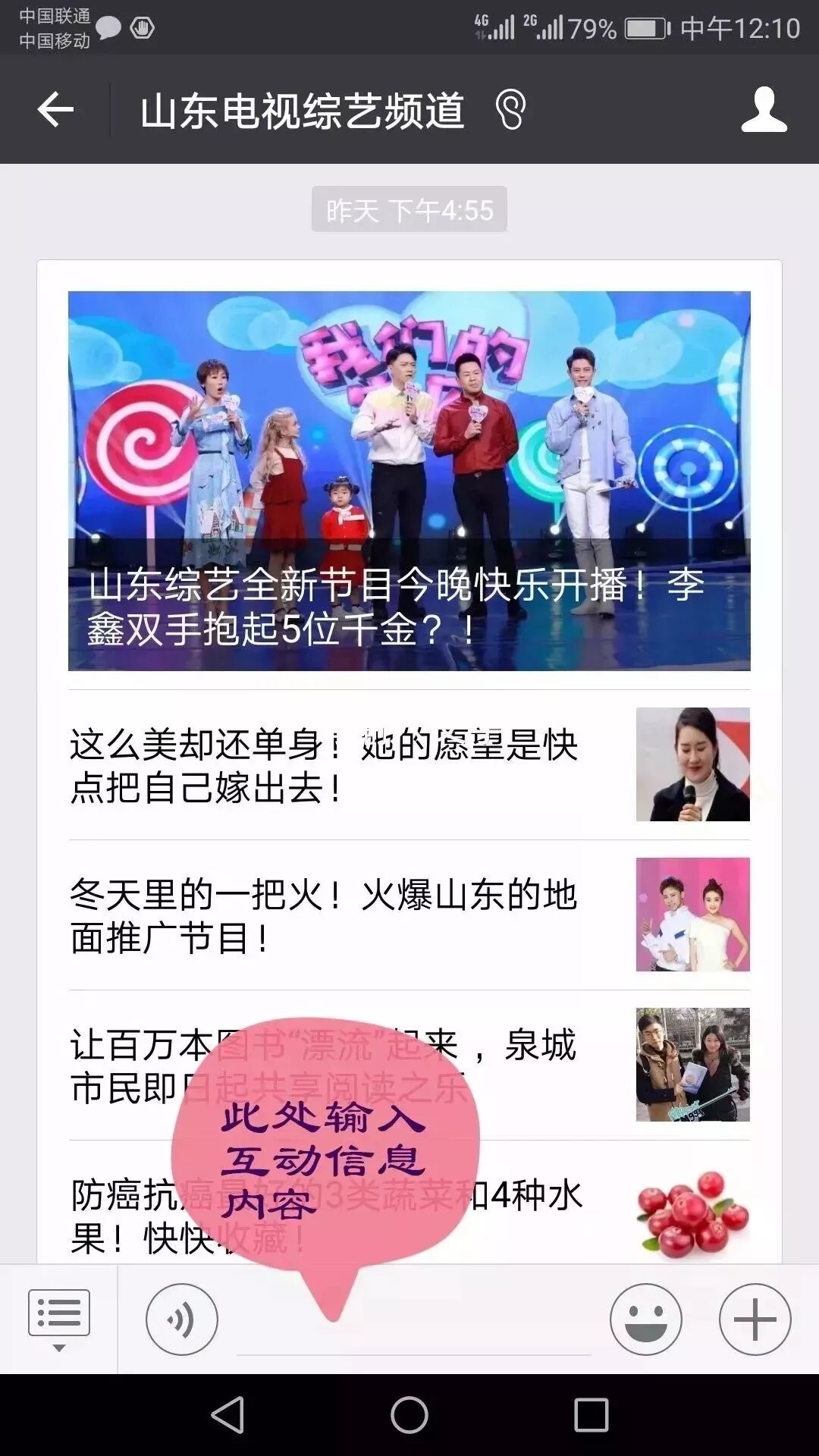 2、关注“山东电视综艺频道”(shandongzongyi)官方微信公众号,把您想说的话通过文字或者视频的形式发送过来!