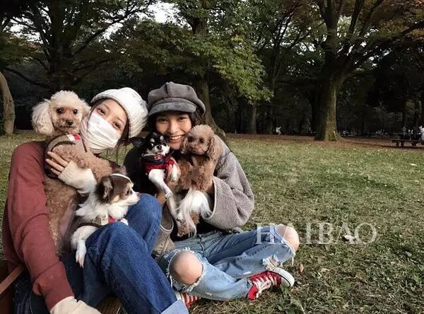 大政绚2016年10月31日-11月7日上传与佐佐木希遛狗合影