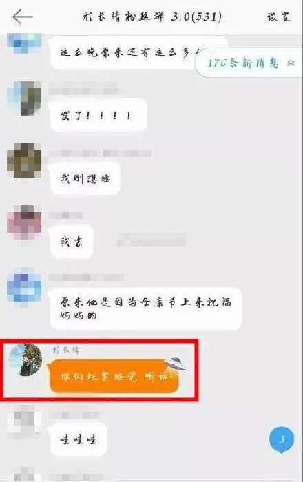 昨晚尤长靖微博空降粉丝群,并且嘱咐大家早点休息