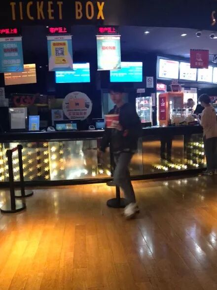 当晚王俊凯穿着非常低调,一件学生款的卫衣,搭配一条水洗牛仔裤,并穿了一双白色休闲鞋,时不时跟助理片语几句,两人正一前一后排着队买爆米花