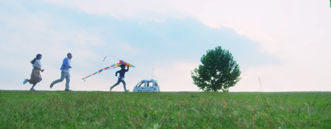 一家人来到了郊外的草地,放风筝、野餐,其乐融融。