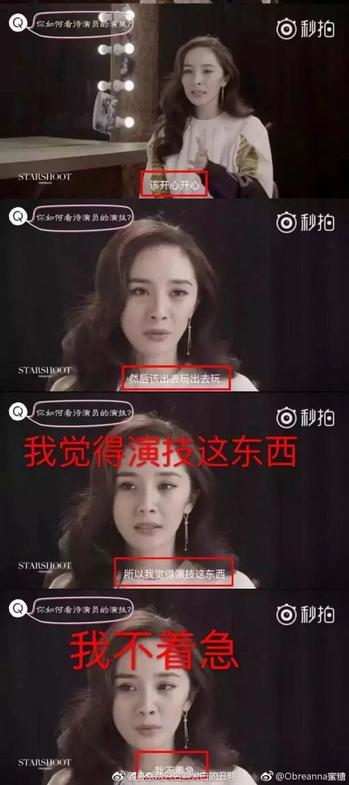 或许是深谙范冰冰那套营销之道,“商人”杨幂仍留有自信:对于改变演技这事,我不着急。