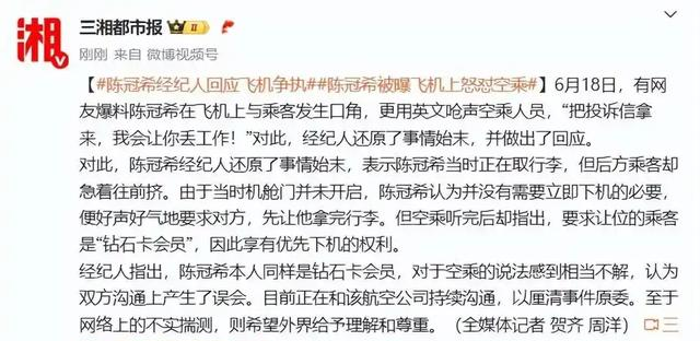 飞机上的争执,早已落幕;网络上的争议,也终将平息。而陈冠希的这份怒火,却点燃了更多人心中的一个声音:我们需要更公平的规则,更透明的服务,也需要每一个人都能被尊重。