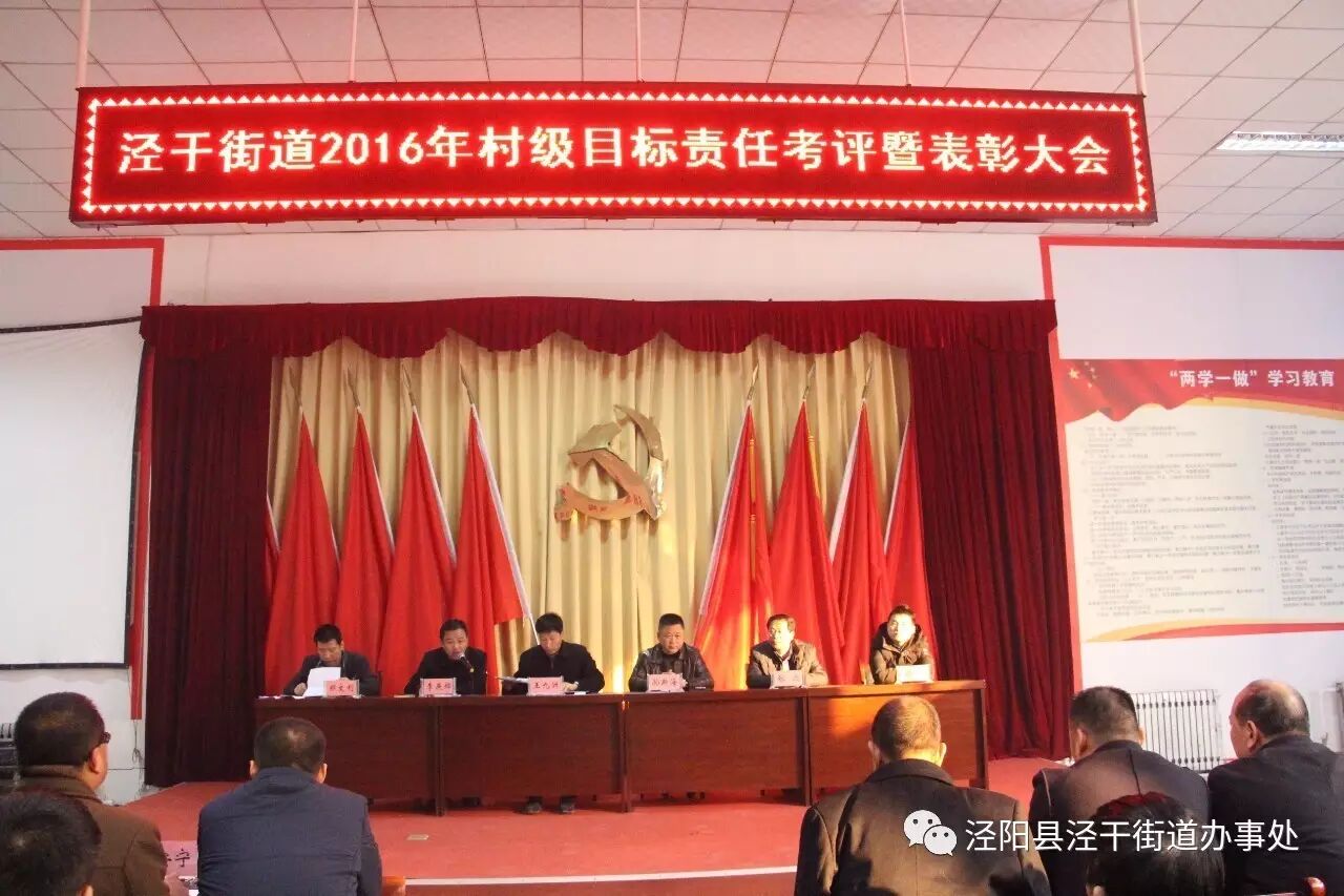 12月30日,泾干街道召开村级2016年目标责任考评暨表彰大会,街道领导班子全体成员、机关全体干部、各村(社区)组以上干部、两代表一委员600余人参加了会议。